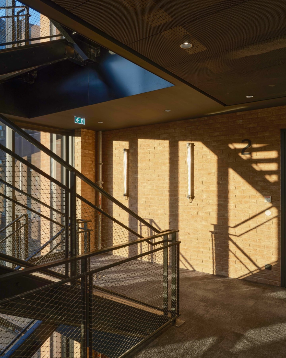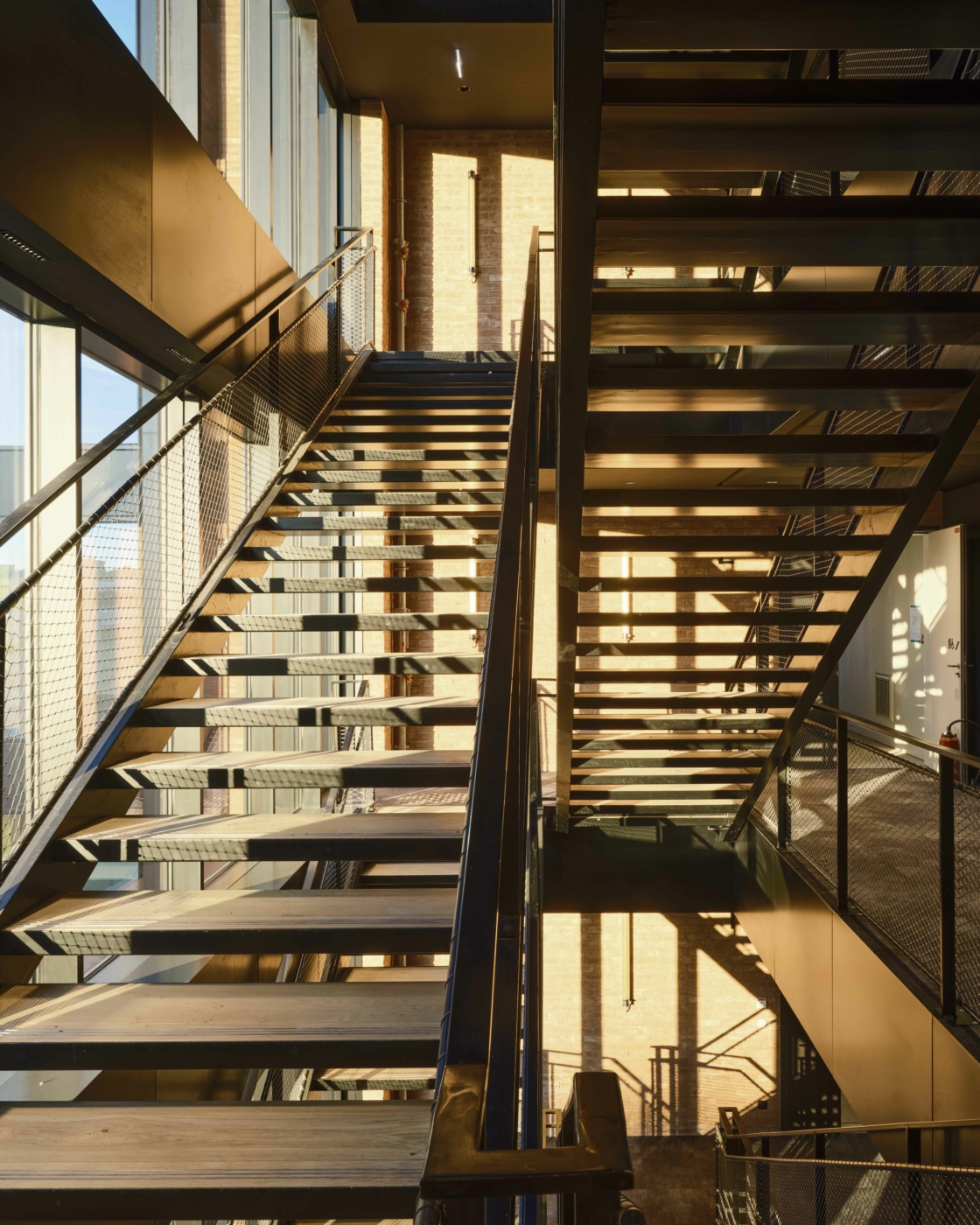 A 128 meters long inner street runs through the building’s base, while the comb-shaped layout with three courtyards helps arrange inflows into the buildings as well as their versatility. The cores arranged centrally within each of the buildings are used for the key interior circulation flows. They were designed to offer maximum comfort of use and feature open stair landings on the façades, basked in natural light. The floor and stair landings are then no longer mere transit points, but are also potential meeting points. The vertical circulations foster pedestrian traffic within the buildings, which increases opportunities for informal encounters.