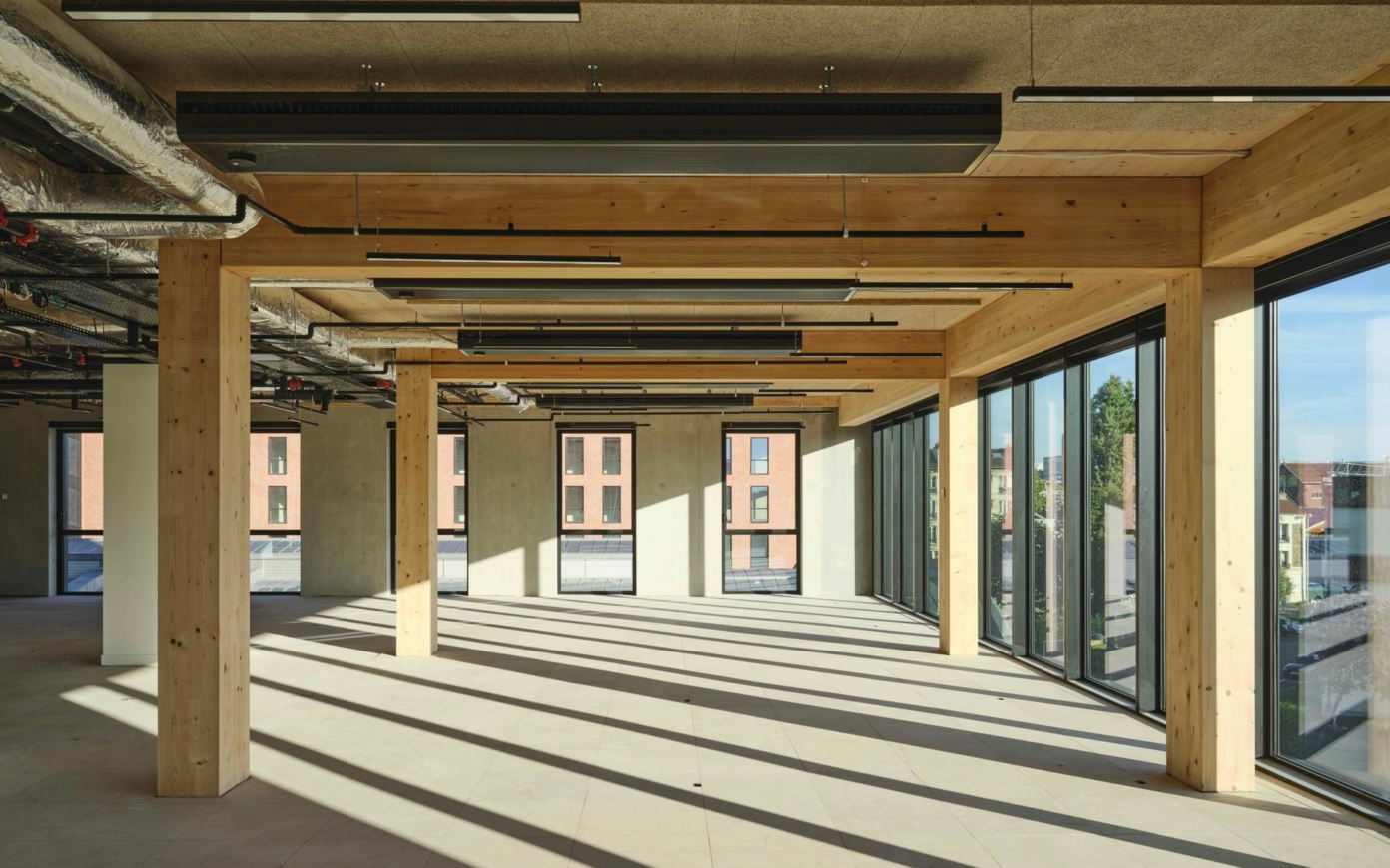 R+6 new tertiary building composed of a wood structure with a first floor in concrete groundfloor for services and a basement level used as a parking. Partial rehabilitation of an existing hall to create a restaurant connected to the office building.