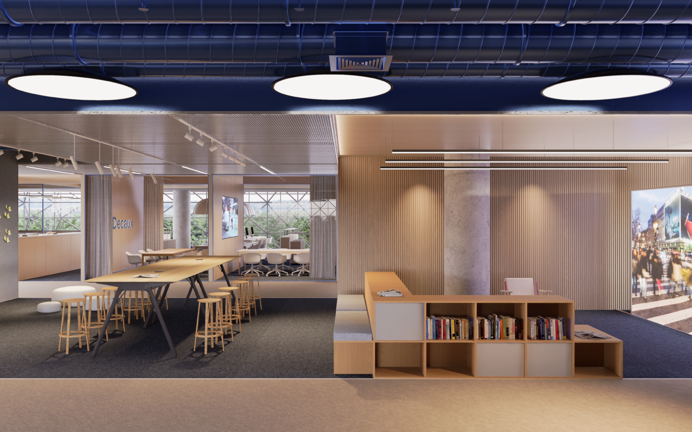 The Sainte-Apolline site in Plaisir, the emblematic headquarters of JCDecaux, is undergoing a transformation. The interior architecture division is designing the common areas, the village square, and the reception, creating flexible spaces that foster collective intelligence. An interior architecture project dedicated to the well-being of its users.