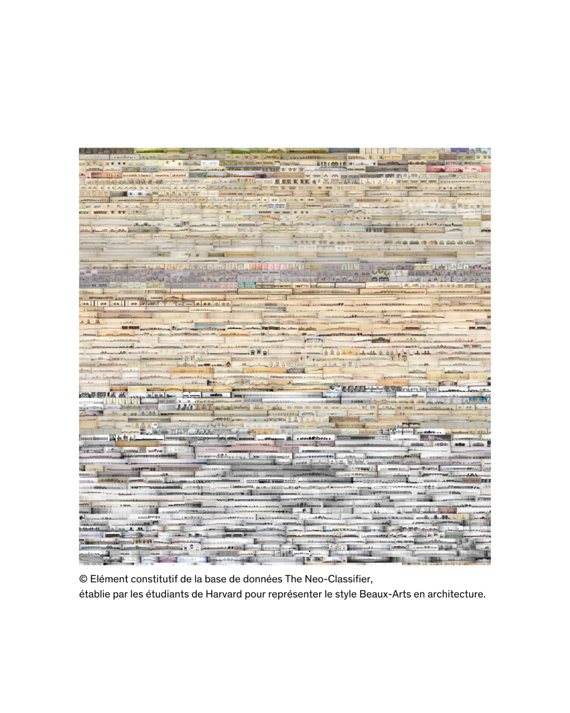 Andrew Witt, enseignant à la Graduate School of Design de Harvard, illustre le potentiel de l’IA dans ce domaine. Avec ses élèves, il a conçu The Neo-classifier, un outil capable de reconnaître et de classer les éléments néo-classiques du tissu urbain : colonnes, frontons, chapiteaux, pour dresser une véritable taxonomie et interroger la place du néoclassicisme dans la ville. Poussant cette idée plus loin, Witt et son équipe ont développé un système capable de « scanner » des territoires entiers, comme en chine, où cet outil a permis de repérer, avec une rapidité inégalée, des éléments d’architecture traditionnelle et d’établir une cartographie exhaustive d’un patrimoine culturel à préserver.