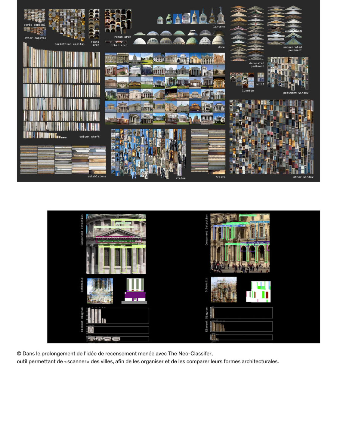 Andrew Witt, enseignant à la Graduate School of Design de Harvard, illustre le potentiel de l’IA dans ce domaine. Avec ses élèves, il a conçu The Neo-classifier, un outil capable de reconnaître et de classer les éléments néo-classiques du tissu urbain : colonnes, frontons, chapiteaux, pour dresser une véritable taxonomie et interroger la place du néoclassicisme dans la ville. Poussant cette idée plus loin, Witt et son équipe ont développé un système capable de « scanner » des territoires entiers, comme en Chine, où cet outil a permis de repérer, avec une rapidité inégalée, des éléments d’architecture traditionnelle et d’établir une cartographie exhaustive d’un patrimoine culturel à préserver.