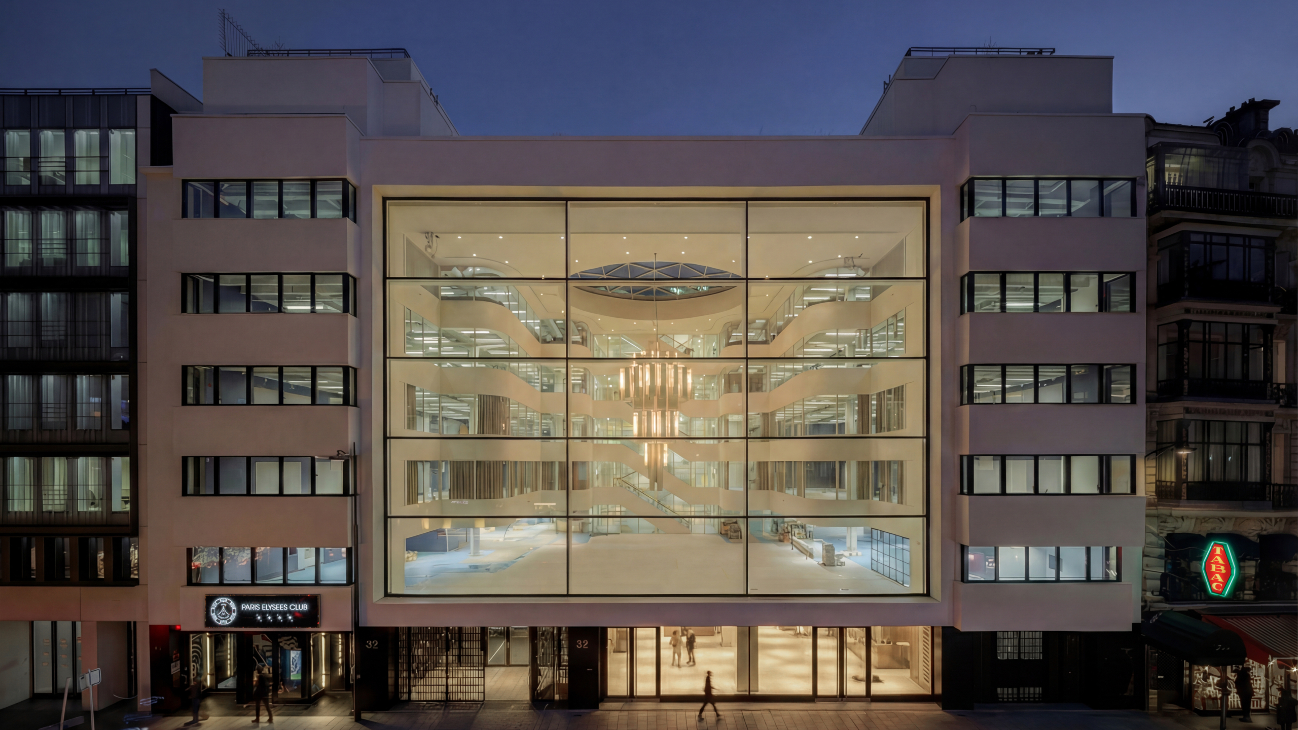 Located within the “golden triangle” of the 8th arrondissement of Paris, the 32–34 Rue Marbeuf complex is positioned at the very heart of the Champs-Élysées district, a neighborhood it shares a common destiny with. In the early twentieth century, this was an area where car manufacturers competed against one another with daring designs in order to entice affluent clients. The building proudly displayed the modernity of showrooms designed by architects such as Auguste Perret and Robert Mallet-Stevens. In 1929, Albert Laprade built a truly remarkable showcase building, and the dealership became an attractive destination with its theatrical glazed façade designed with the assistance of Jean Prouvé.