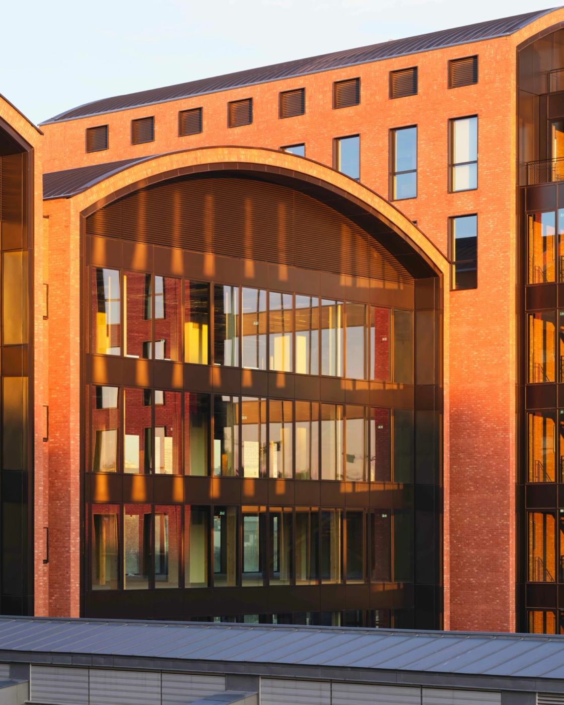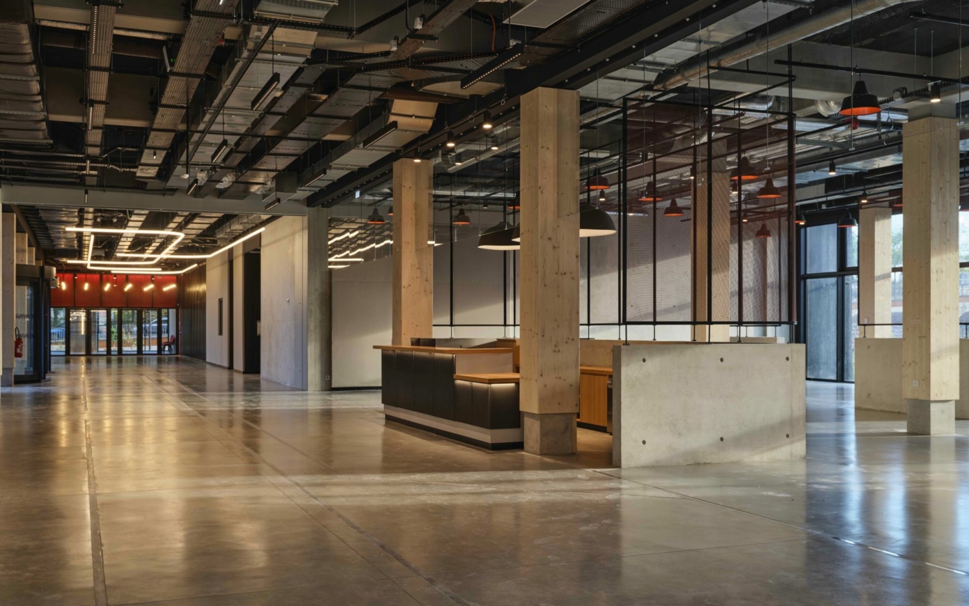 A 128 meters long inner street runs through the building’s base, while the comb-shaped layout with three courtyards helps arrange inflows into the buildings as well as their versatility. The cores arranged centrally within each of the buildings are used for the key interior circulation flows. They were designed to offer maximum comfort of use and feature open stair landings on the façades, basked in natural light. The floor and stair landings are then no longer mere transit points, but are also potential meeting points. The vertical circulations foster pedestrian traffic within the buildings, which increases opportunities for informal encounters.