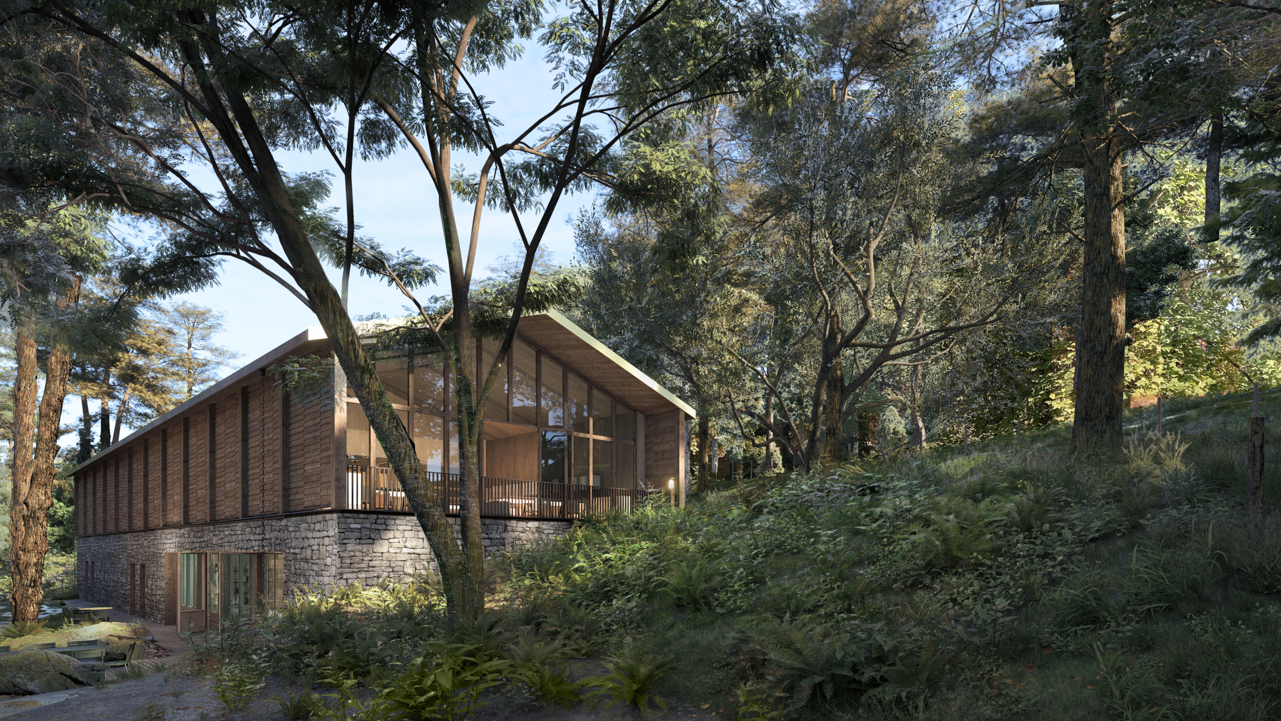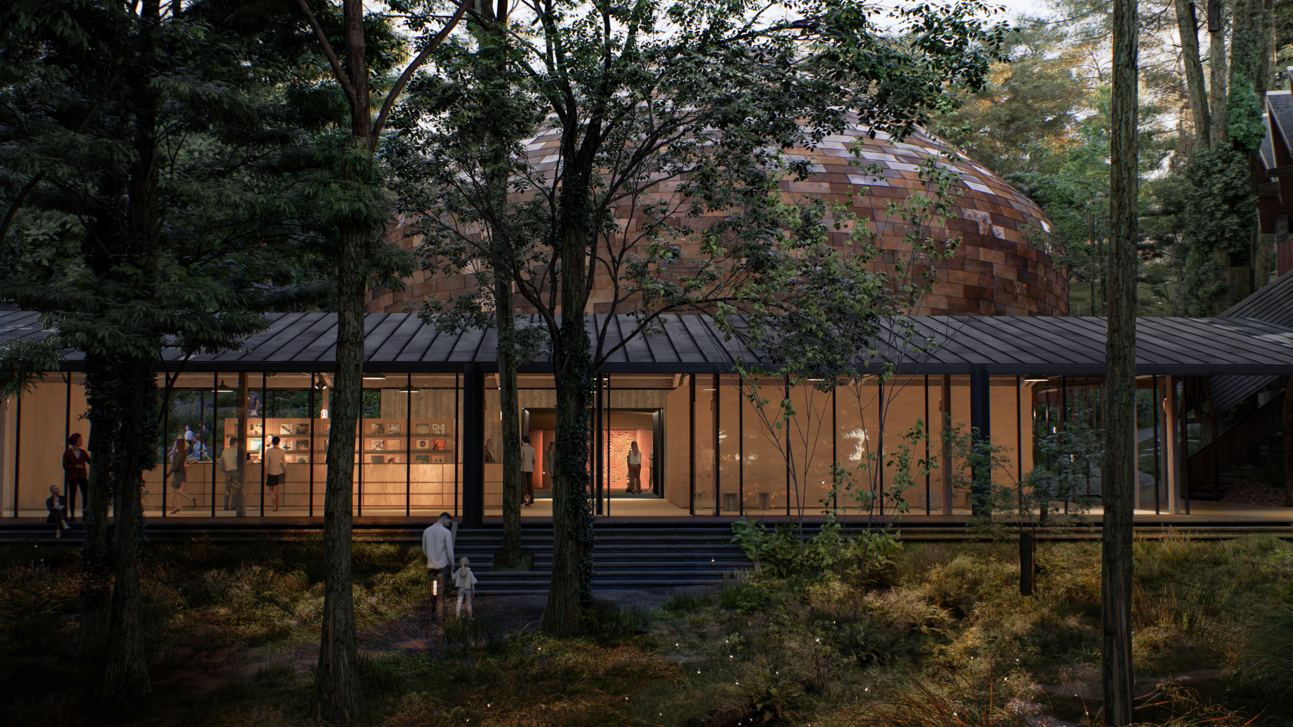 Boasting an outstanding natural setting, La Source Vive aims to subtly melt into its wooded surroundings. Though the organic volumes of the conch, which is partly buried in the landscape, was guided by the quest for outstanding acoustics, its location was determined by the desire to preserve the remarkable ground cover of the site. An in-depth study of plant health has nevertheless revealed that the soil was somewhat depleted by excessive mowings, however, inspiring work with the landscape designers at Coloco. This led to the development of a system based on stratified vegetation and the replanting of native species to enable the restoration of natural underbrush on site. These intermediate strata will make up for the lack of soil fertility and will allow for the creation of new milieus and pathways. The roofing and the landscaped base of La Source Vive will help the new concert hall blend in its environment—the copper hues of the roof cladding recalling that of the red cedar wood used for La Grange au Lac—while also making sure that both auditoriums retain their own distinctive character. Over time, a patina will gradually allow the hall to fit in with the hues of the local plant palette, in particular, those of the lichens that are present on location.