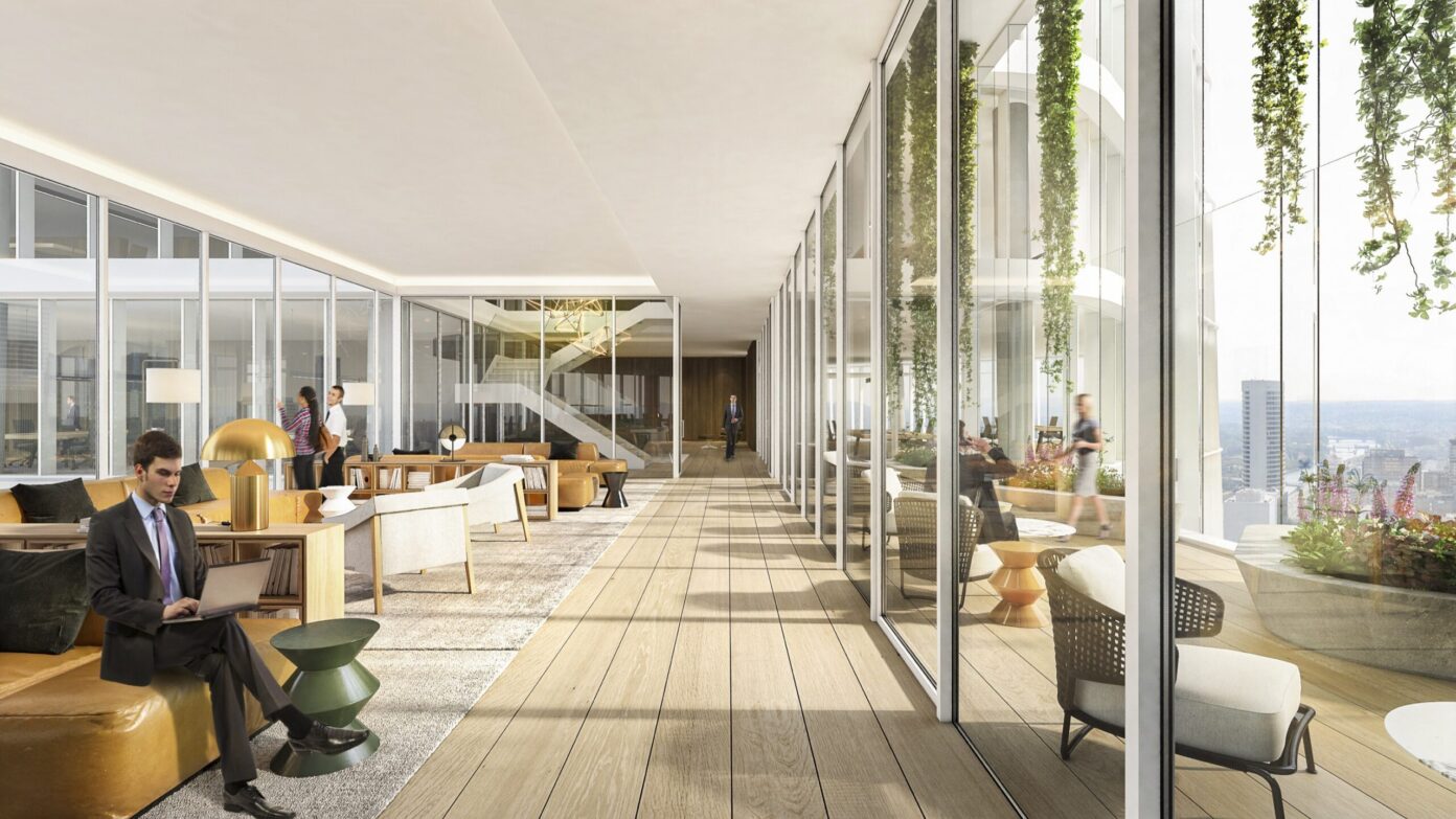 Office tower with two wings including: 30 life platforms (the “Links”), an open-air rooftop, 10 cafés and restaurants, 3 auditoriums, a business center, a sports venue and a medical center.