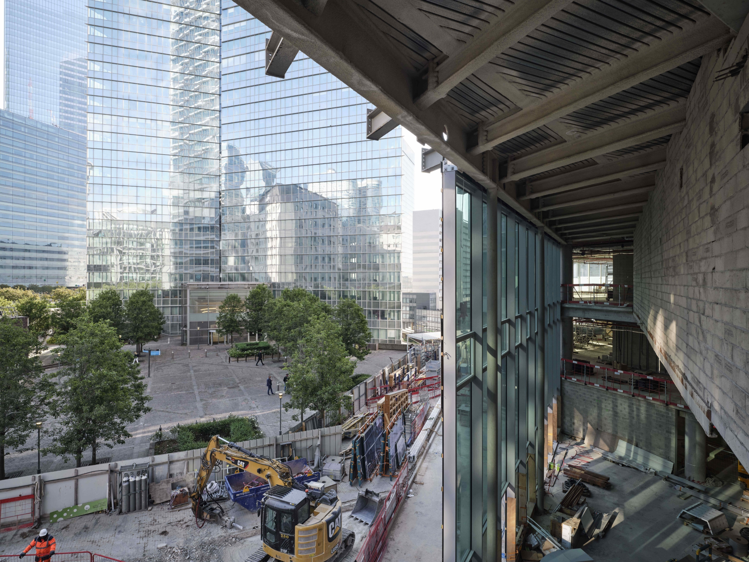 — Unprecedented 6,000 sqm duplexes. By connecting the two buildings, these platforms create 3,000 sqm office floors, a size unrivaled in all of La Défense. Joined two to two by a wide and bright staircase, these spaces form duplexes with a surface area of 6,000 sqm that can accommodate up to 500 staff, i.e. four times more than in a conventional office high-rise.