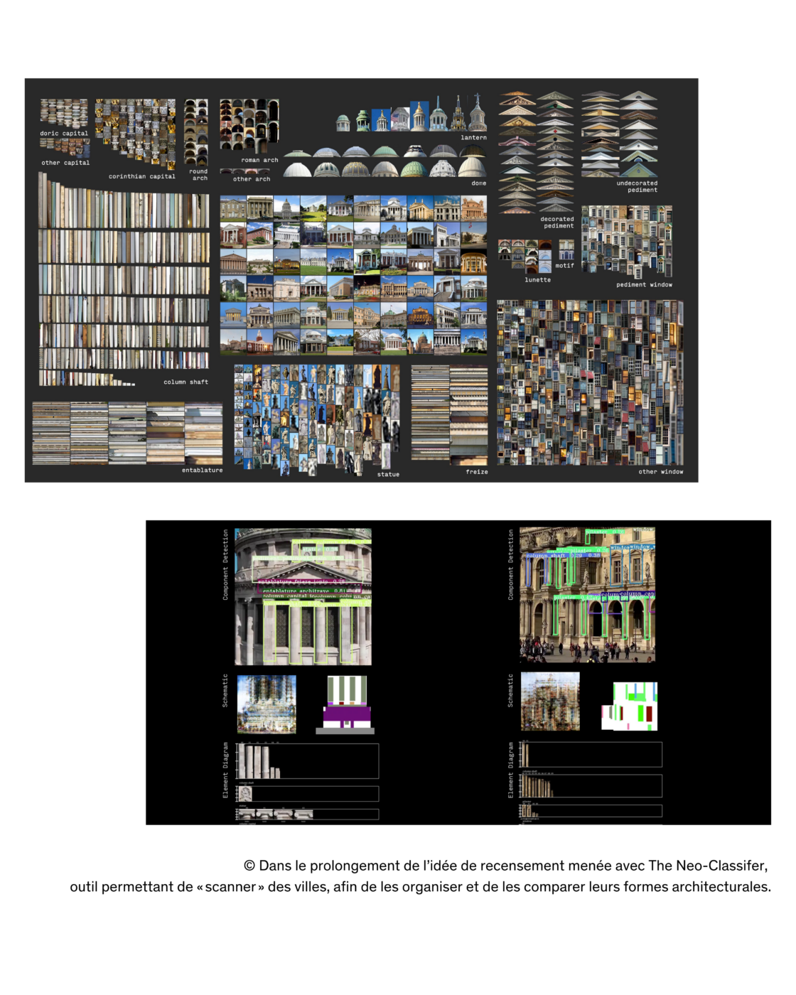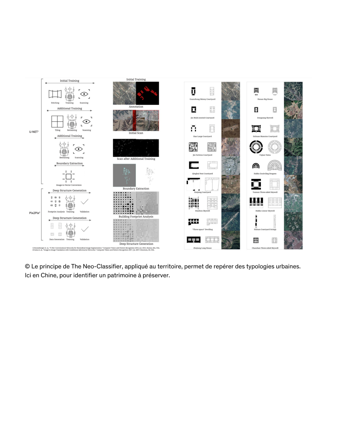 Andrew Witt, enseignant à la Graduate School of Design de Harvard, illustre le potentiel de l’IA dans ce domaine. Avec ses élèves, il a conçu The Neo-classifier, un outil capable de reconnaître et de classer les éléments néo-classiques du tissu urbain : colonnes, frontons, chapiteaux, pour dresser une véritable taxonomie et interroger la place du néoclassicisme dans la ville. Poussant cette idée plus loin, Witt et son équipe ont développé un système capable de « scanner » des territoires entiers, comme en chine, où cet outil a permis de repérer, avec une rapidité inégalée, des éléments d’architecture traditionnelle et d’établir une cartographie exhaustive d’un patrimoine culturel à préserver.