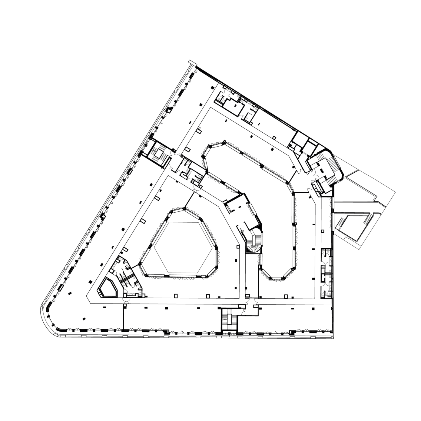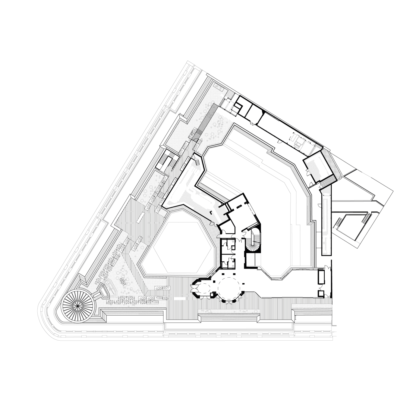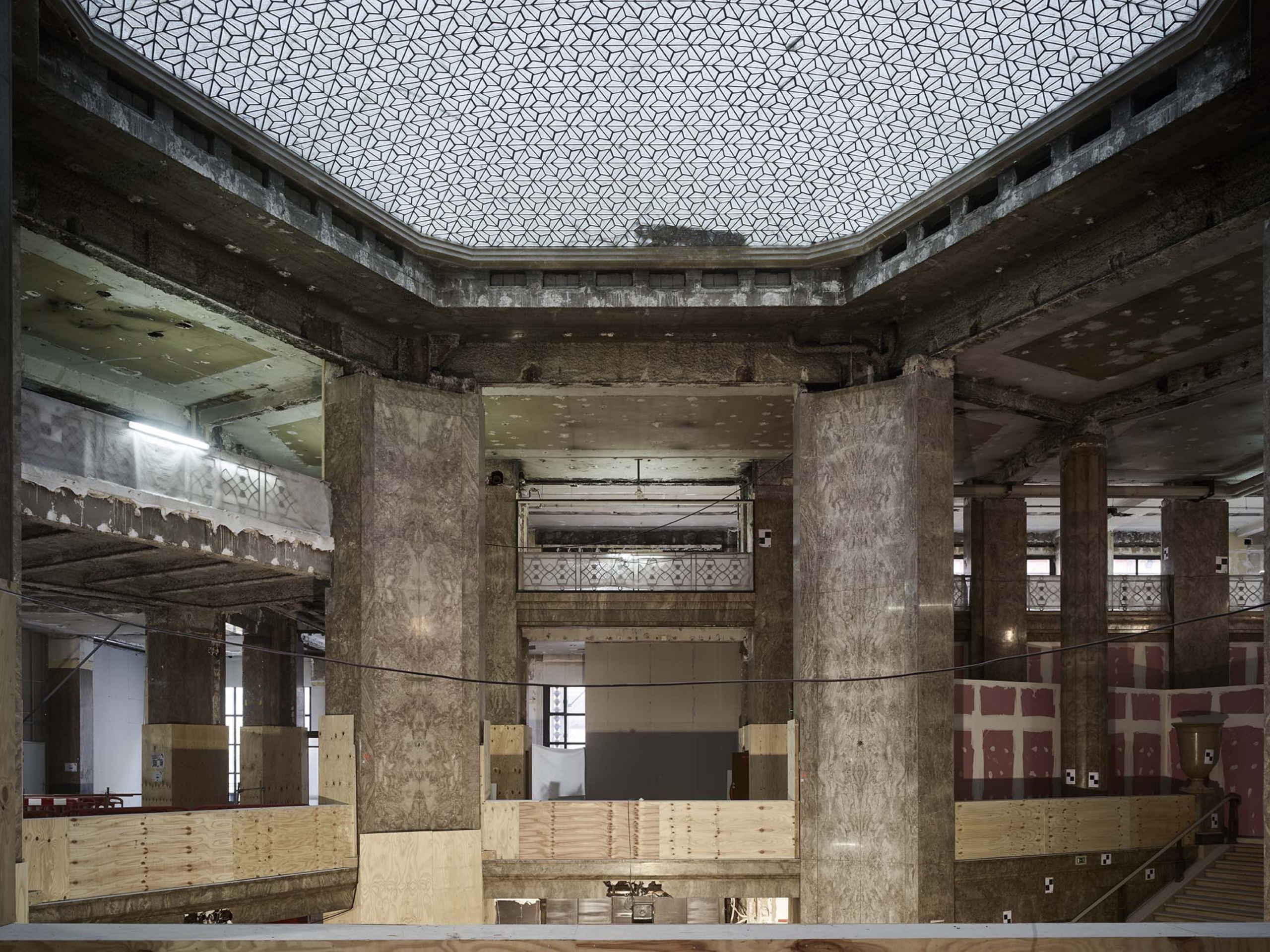 La restructuration redistribue les espaces par un nouveau cheminement, mis en valeur par une écriture contemporaine. PCA-STREAM souligne les éléments qui ont perduré et redéfinit ceux dont la lisibilité a été affaiblie. Parmi les éléments patrimoniaux remis en valeur, l’escalier d’honneur et les décors intérieurs de la National City Bank, avec ses vases monumentaux, appliques à palmettes, balustres, habillages de marbre ou boiseries de Jacques-Émile Ruhlman.